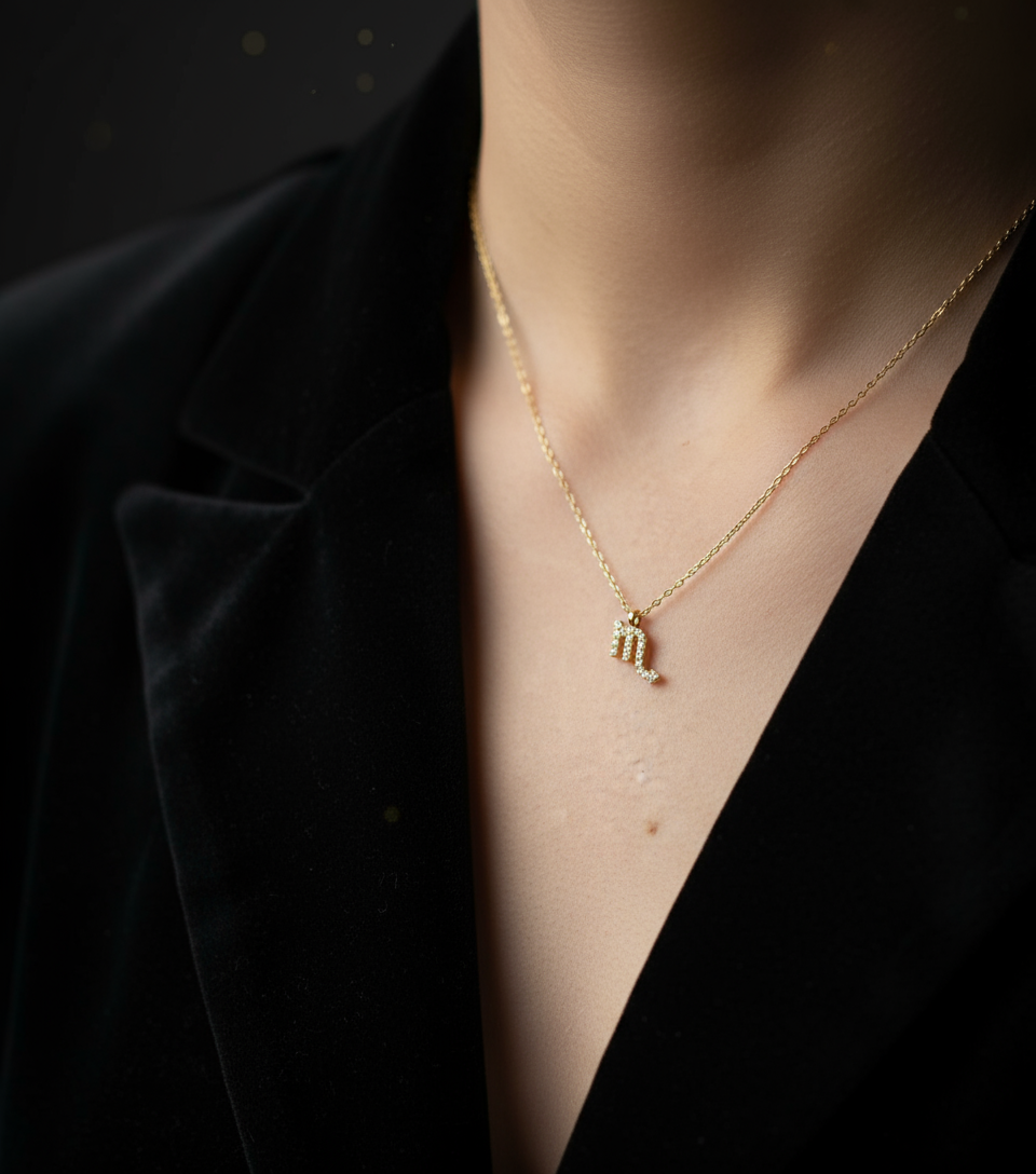 Scorpius Zodiac Sign Gold Pendant Necklace